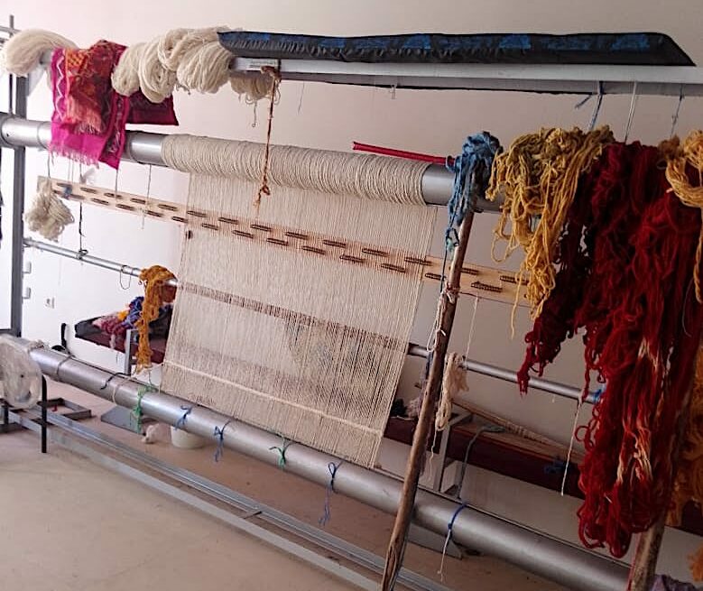 At the end of winter, the weaving cycle begins with the preparation of the specialized weaving tools: combs, cards, distaffs and baskets. The women sit on the floor and proceed to carding and spinning to work the weft thread by a back and forth.