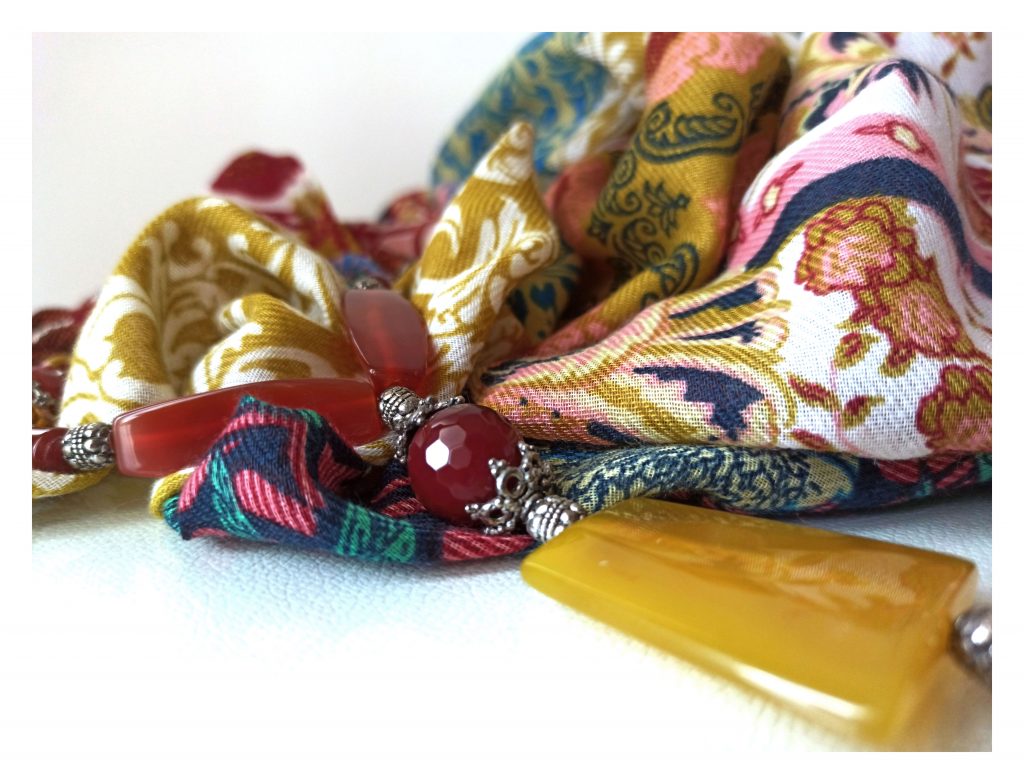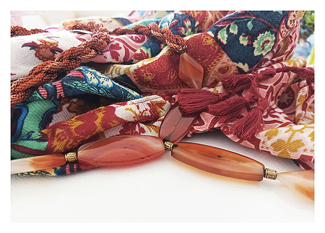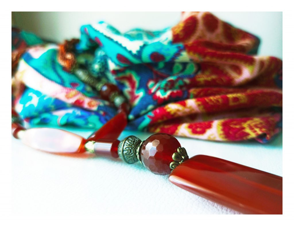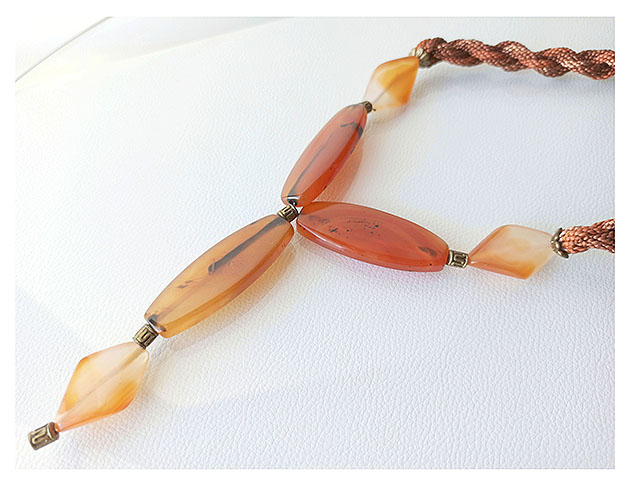 Collier Cornaline Pierre Métal Cuivre et Doré