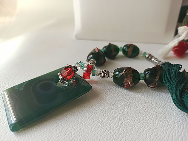 Collier Cornaline Grenat Résine Pâte de Verre Métal Argenté